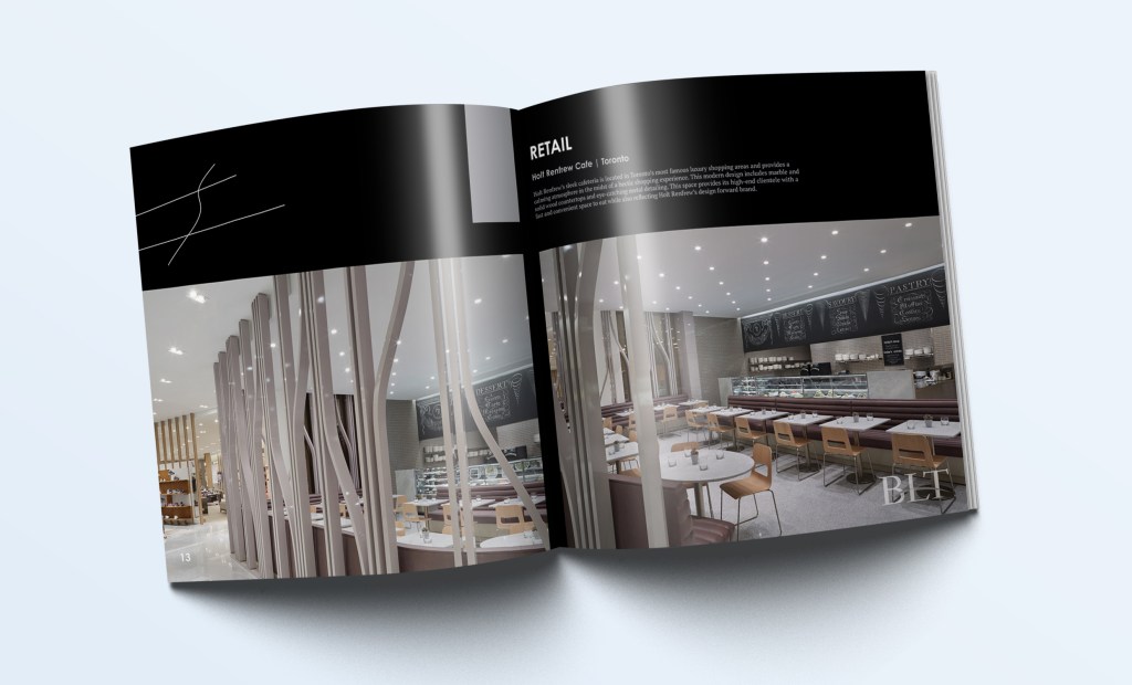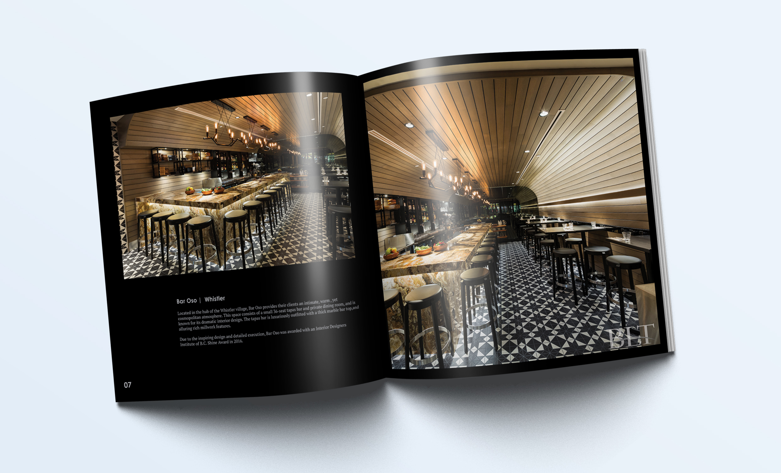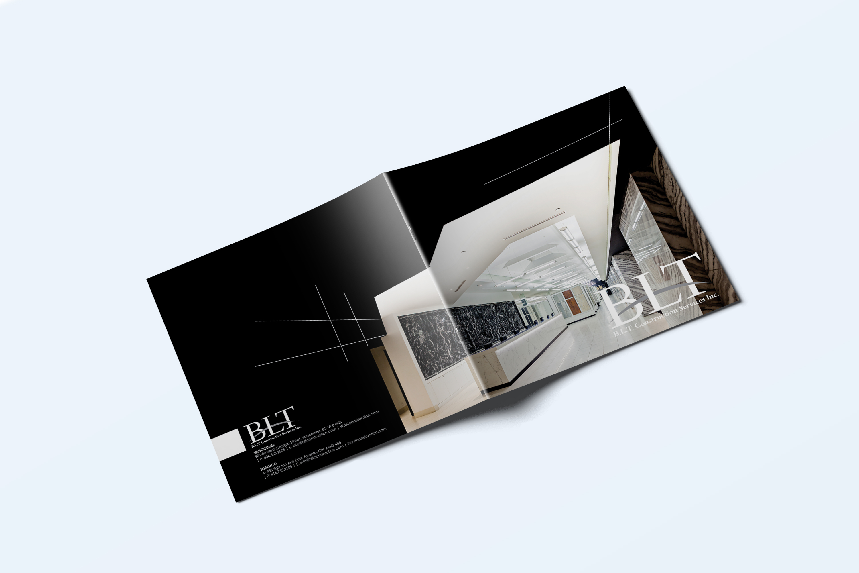 This square booklet brochure, designed for BLT Construction, is to provide customers with an overview of the services offered – focusing on Vancouver clientele- and highlight the dynamic and high-end projects previously completed.