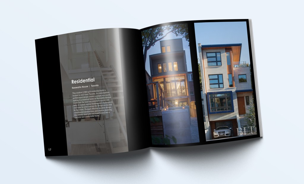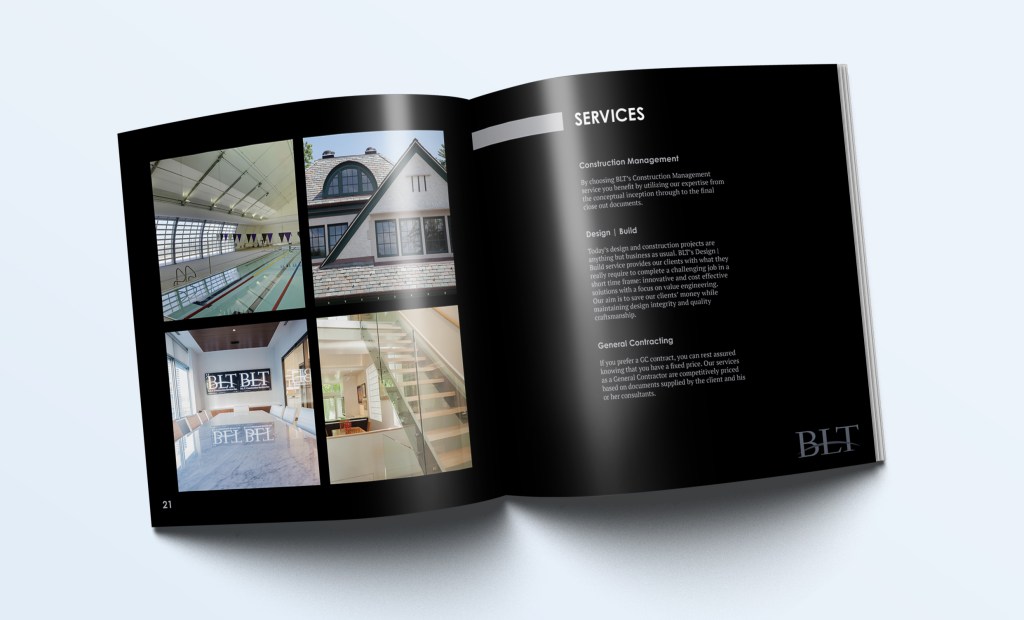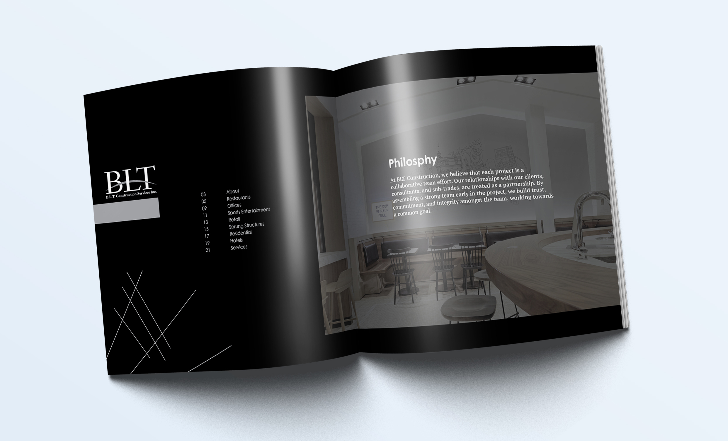 Below you will find collateral created for BLT Construction which operates out of Vancouver, BC and Toronto, ON. BLT Construction company offers a variety of commercial and residential construction services. The brand is high-end, luxury and focused on customer experience.