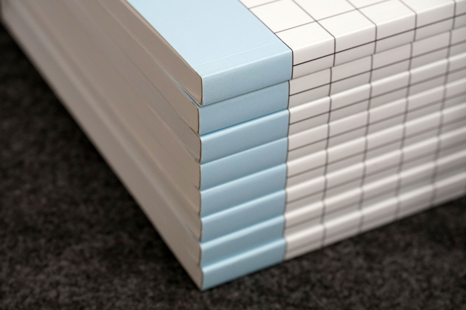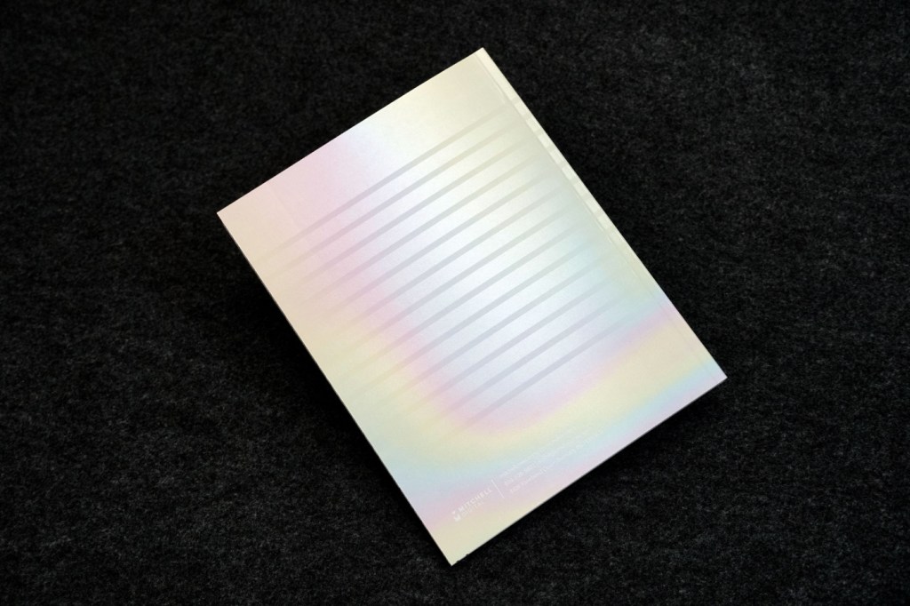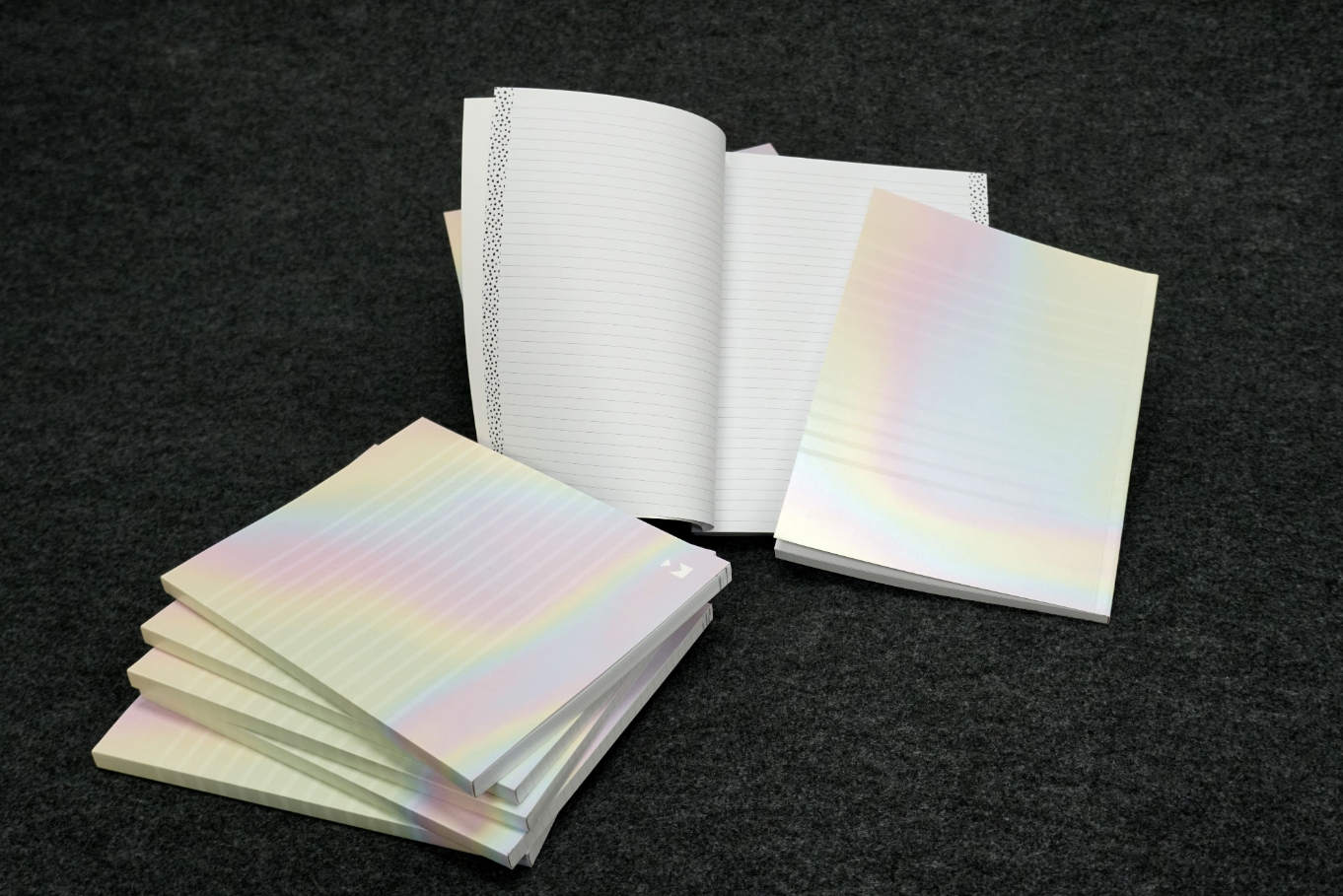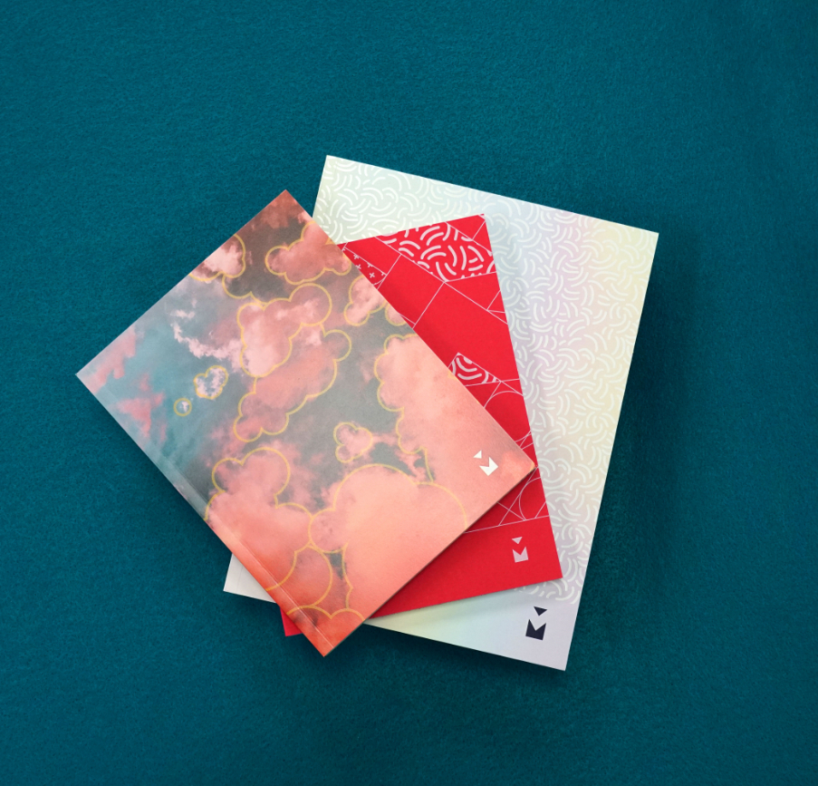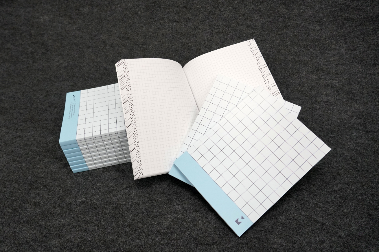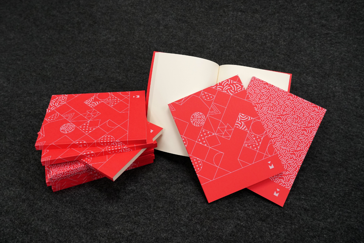 The notebooks were each designed to feature a specialty ink that can be printed on the Kodak Nexfinity Press. Each book also has varying pages such as lined pages, blank pages or graph pages. Some books are printed on coloured stock. Finally, the notebooks were perfect bound in-house and given away promotionally.