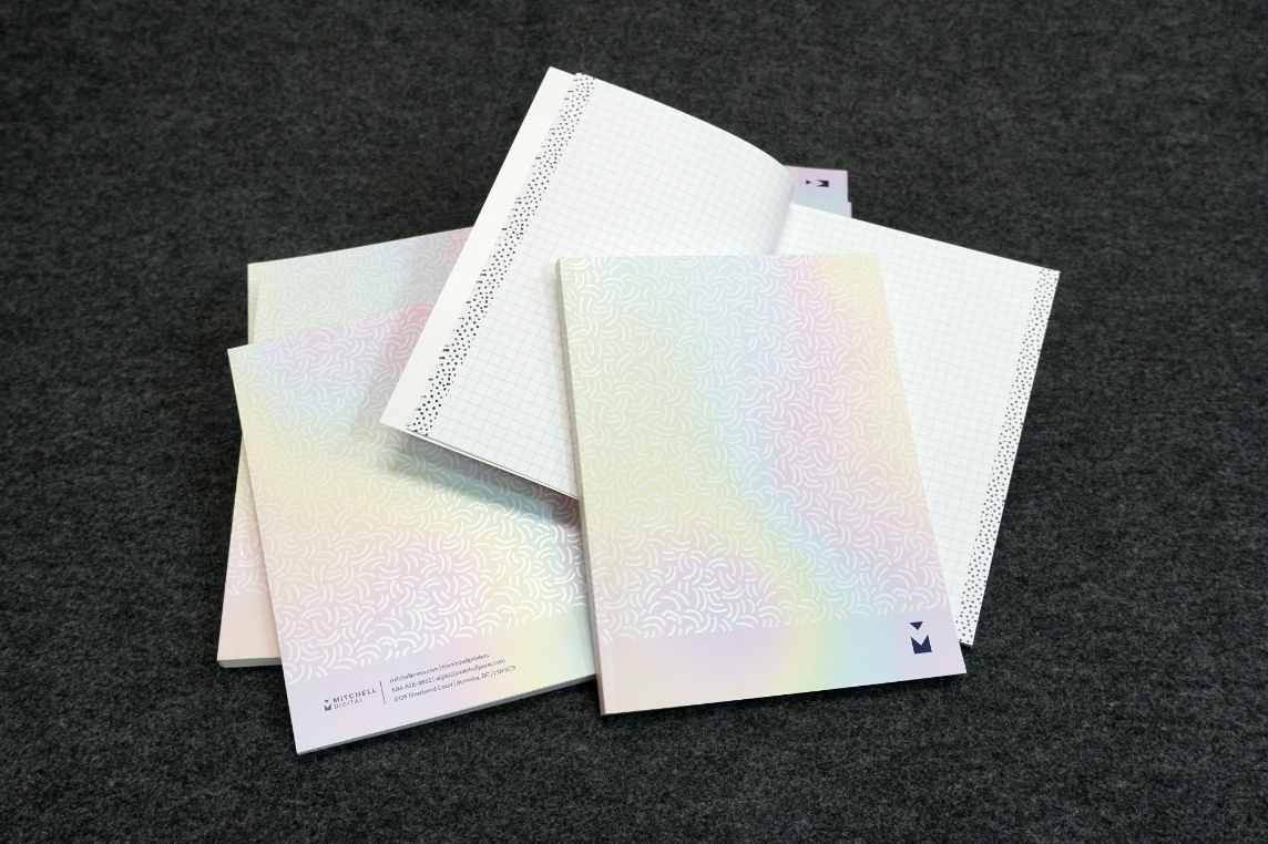 As the in-house designer at Mitchell Press & Mitchell Digital, I created these notebooks to increase the Mitchell Digital brand awareness and demonstrate our capabilities and services for Design, Printing and Finishing.
