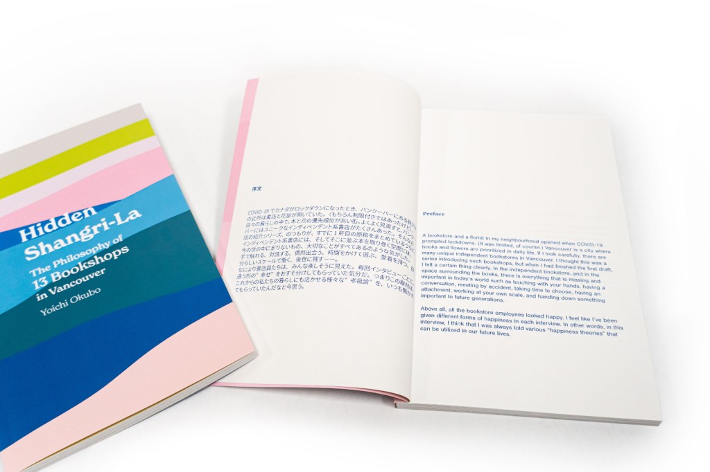 Author Yoichi Okubo’s book “Hidden Shangri-La, The Philosophy of 13 Bookshops in Vancouver” combines interview articles in Japanese and English about thirteen independent bookstores in Vancouver.