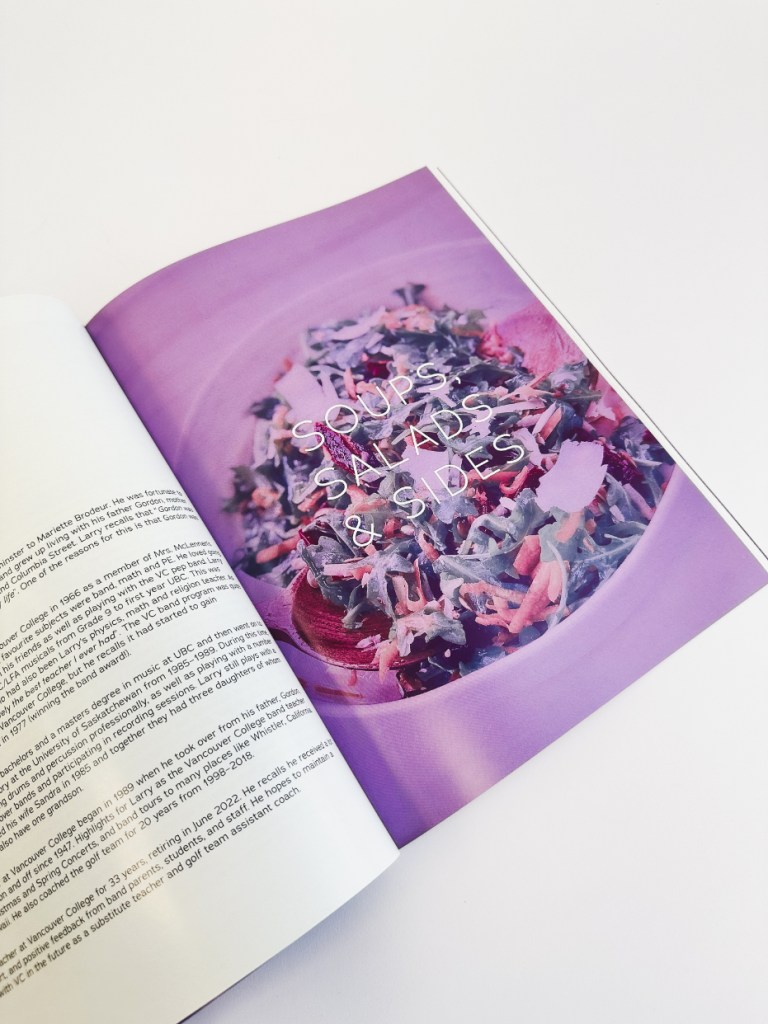 The client was looking for help putting together a commemorative cookbook design that showcases recipes submitted by the families and staff at Vancouver college. They supplied their own photos of the recipes they made, which I edited for cohesion. They also wanted to include some children’s drawings. These were scanned and vectorized to use throughout the layouts – very cute!
